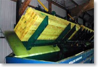 Die Kastenförmige Bauweise des Tauchbeckens bietet hohen Widerstand gegen Verformung z.b. bei Stößen durch den Gabelstapler. Das Kippen der Pakete beschleunigt das Abrinnen des überschüssigen Holzschutzmittels. Das spart Holzschutzmittel und beschleunigt die Abtropfzeit.