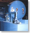 The access port is hydraulically locked by either horizontal or vertical control mechanisms. The pressure pump, vacuum pump, automatic valves, and control panel are located on the side of the machine in a compact design.